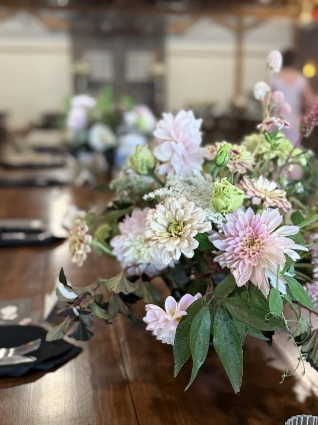 We create one-of-a-kind floral arrangements inspired by the seasons and most of the material used in our designs is grown right here on our farm.